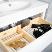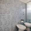 Il bagno è moderno e funzionale, dotato di doccia e spazi pratici.